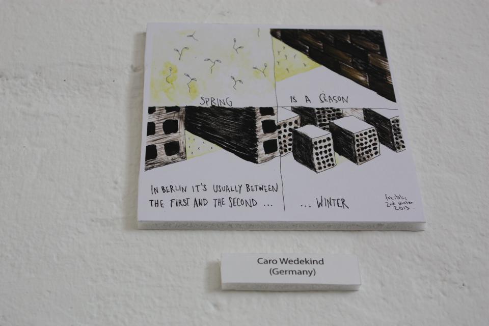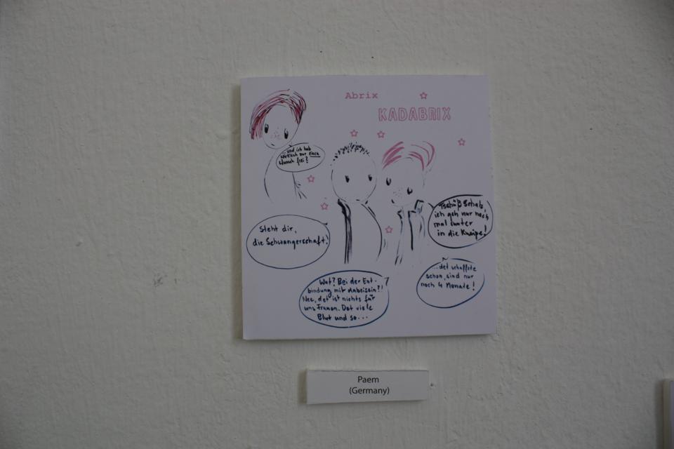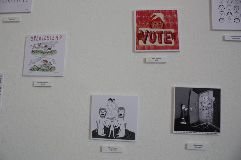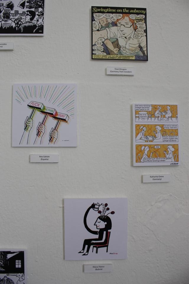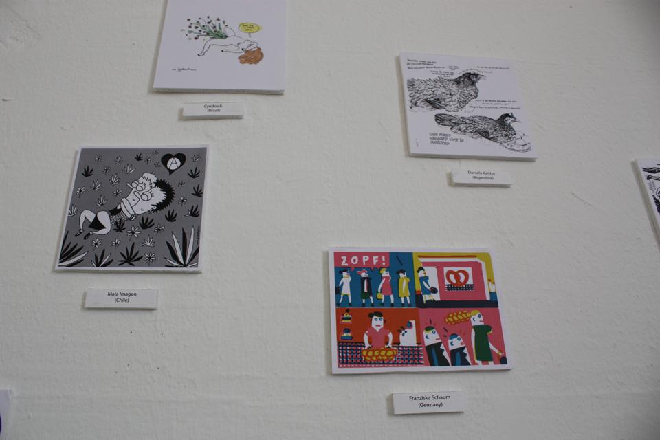 Guests: Daniela Kantor (AR), Agustina Guerrero (AR), Silvia Lenardón (AR), María Luque (AR), Maco (UY), Gervasio Troche (UY), David Galliquio (PE), Amadeo Gonzáles (PE), Renso Gonzáles (PE), Tinet Elmgren (DE, from SE), Inés Estrada (MX), Fabiane Chiquinha (BR), Cynthia B. (BR), Mala Imagen (CL), Ana Galván (ES), Ellen Lindner (USA), Tobias Tak (UK based, Dutch), Jasmine Greenhill (UK), Tanya Meditzky (UK), Katharina Greve (DE), Lilian Mousli (DE), Ulli Lust (DE), Franziska Schaum (DE), Elke R. Steiner (DE), Maki Schimizu (J/DE), Richard Cowdry (DE, from UK), Franziska Junior (DE), Victoria Lomasko (Russia), Caro Wedekind (DE), Julia Homersham (UK), Ernán Cirianni (AR), Francoise Cactus (FR), Nora Below (DE, from SE), Lorena Alvarez (MX), Mónica Naranjo Uribe (CO), Paem (DE), et al.