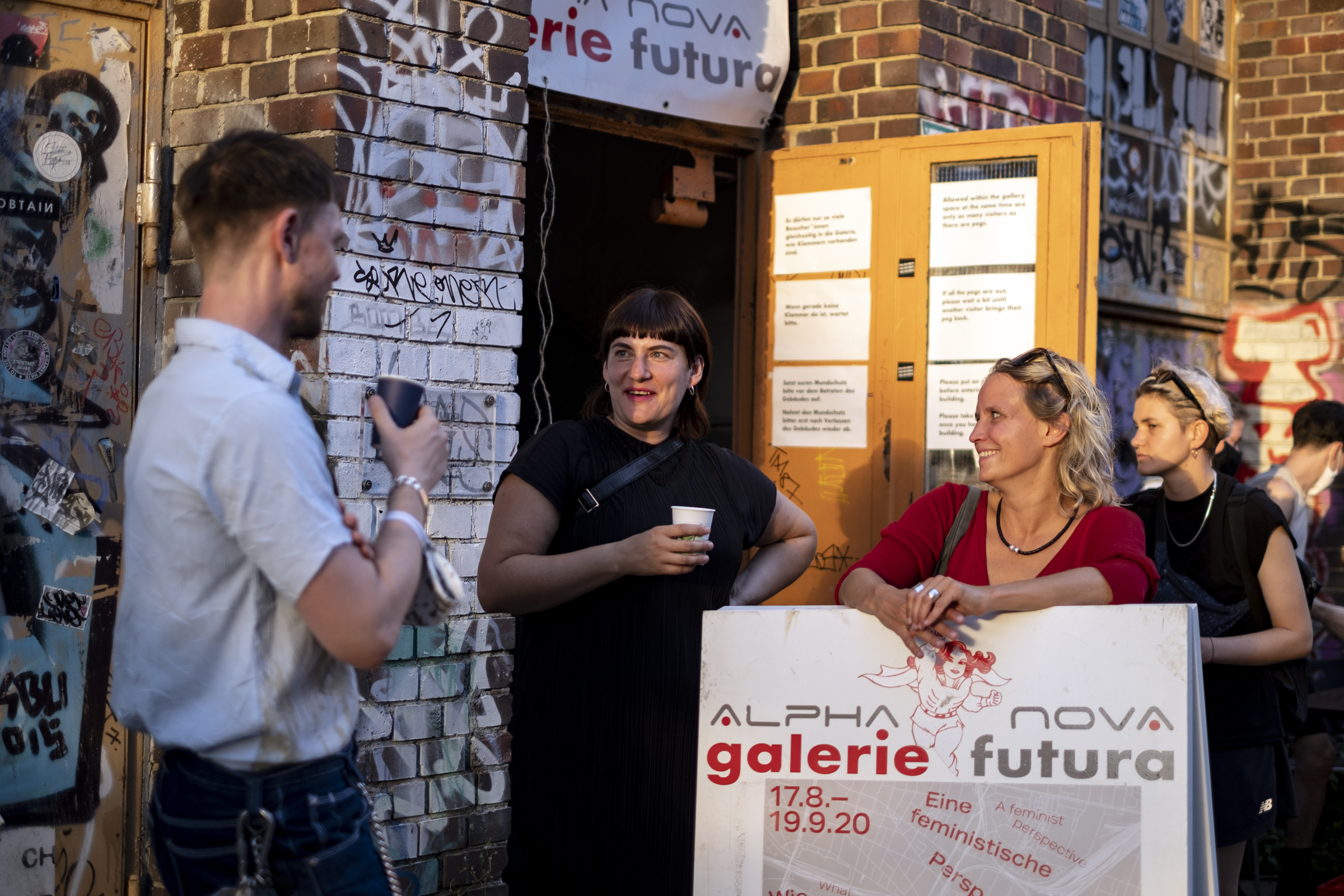 Die geltenden Abstands- und Hygienemaßnahmen werden gewährleistet und entsprechend den geltenden Richtlinien angepasst. Bei gutem Wetter werden DJ Set und Bar im Freien stattfinden. Zugang zur Ausstellung jeweils nur für eine begrenzte Anzahl an Besucher*innen und nur mit Mund-Nasen-Bedeckung.