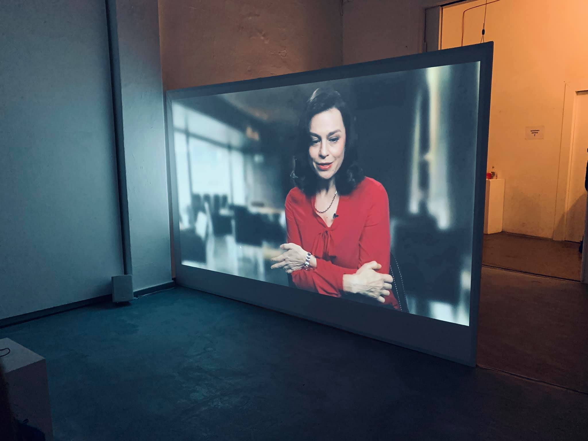 Dare to Dream von Sharon Paz ist eine interaktive Videoinstallation, die die Betrachter*innen zwischen Realität und Fiktion positioniert. Basierend auf Recherchen zu den Olympischen Spielen 1936 in Berlin widmet sich die Arbeit zwei Frauen – der deutsch-jüdischen Hochspringerin Gretel Bergmann und Leni Riefenstahl, Produzentin von Propagandafilmen während der NS-Zeit. Paz transferiert deren Geschichten mit fiktiven Charakteren in die Gegenwart. Die Besucher*innen können an der Entwicklung verschiedener Erzählstränge durch das Auswählen unterschiedlicher Antwortmöglichkeiten, welche das interaktive Video bereithält, aktiv mitwirken. Dadurch stellt sich auch die Frage, wer die Hegemonie über Geschichtsschreibung und Erinnerungskultur besitzt.