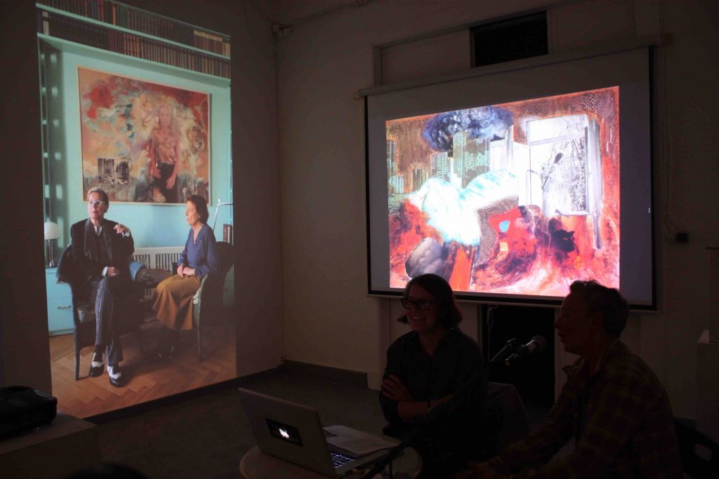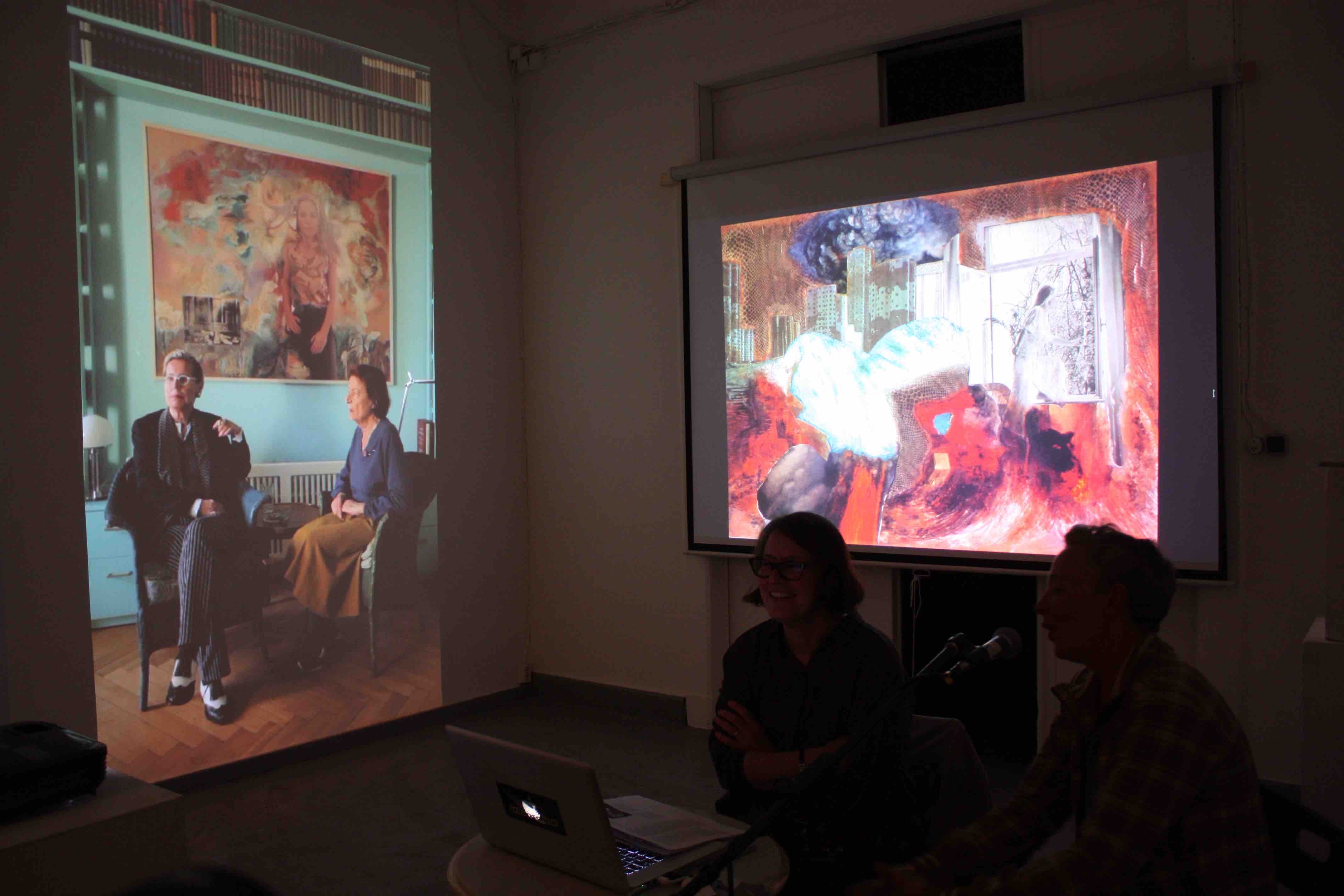 Die Installation Silvia Bovenschen und Sarah Schumann 2012 von Michaela Melián portraitiert die beiden Feministinnen in der Rückschau auf die gemeinsam organisierte Ausstellung „Künstlerinnen International“ 1977. Die Künstlerin Melián formuliert mit ihrer Arbeit eine Form von feministischer Genealogie, die als Bezugspunkte ihrer eigenen Geschichte sichtbar gemacht werden. Im Gespräch mit Melián werden von der künstlerischen Arbeit ausgehend die Bedeutung feministischer Genealogien und die gesellschaftliche Sichtbarkeit/Relevanz von Künstlerinnen heute thematisiert. Bedeutungen und Nachwirkungen der Ausstellung „Künstlerinnen International“ sollen im Dialog mit der Künstlerin exemplarisch diskutiert und beleuchtet werden, was feministische Perspektiven damals und heute sichtbar machen können. Auch in ihrer aktuellen Einzelausstellung „Electric Ladyland“ im Lenbachhaus München (bis 12.6.2016) führt die Künstlerin unter anderem ein Anliegen fort, das sich konsequent durch ihr Werk zieht: von der Geschichtsschreibung übergangene Frauen, die für die Kulturgeschichte eine Rolle spielten, erfahren eine Sichtbarkeit. In „Electric Ladyland“ geht es indes nicht um eine historische Persönlichkeit, sondern um eine fiktive, um die Kunstfigur der Olympia aus Jacques Offenbachs Oper „Hoffmanns Erzählungen“ von 1881 – ein Werk zu Beginn der Pariser Moderne.
